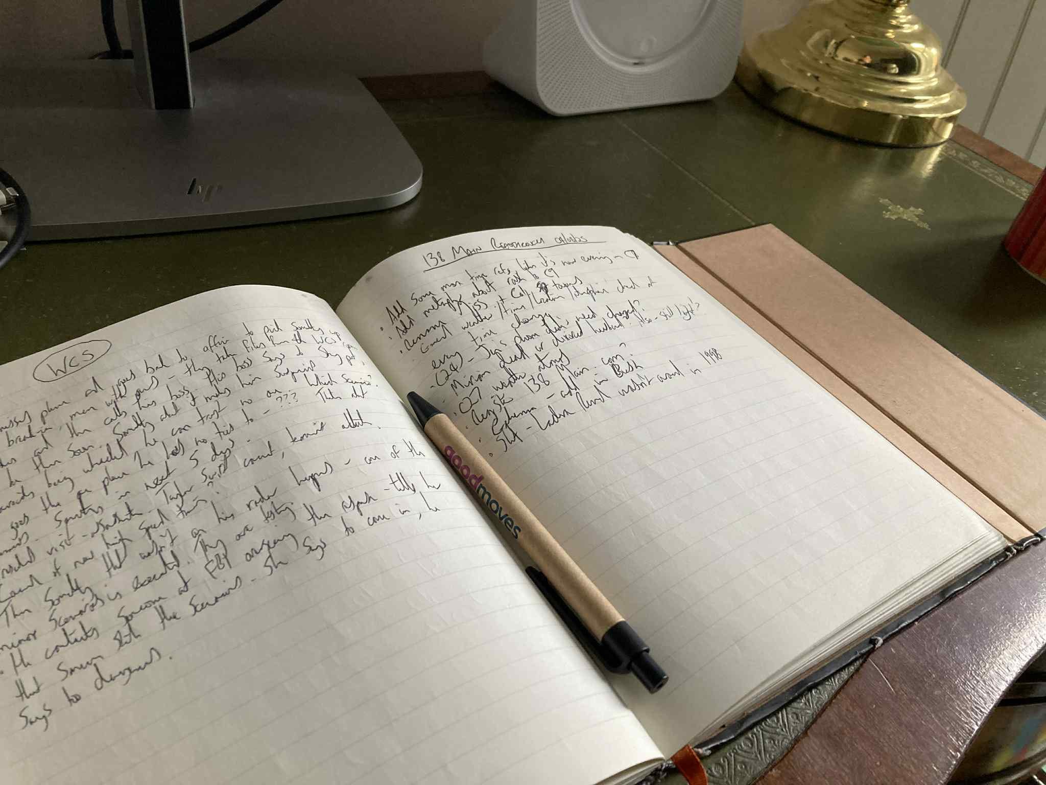 I still use paper notebooks, but more for the structured brainstorming part - when I’m starting to flesh out an outline, or when I’m stuck at 60,000 words and need to write myself out of a corner. Pen and paper definitely engages a different part of your brain from keys and screen, and I find the tactility helps me to break down problems more easily. You also get a real-life Track Changes function by looking at what you’ve scribbled out or drawn a line through.